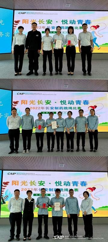 經(jīng)過緊張激烈的比賽,最終是行政部組成的“志今朝隊(duì)”獲得團(tuán)體比賽第一名,質(zhì)量控制部和EHS部組成的“還是那個(gè)隊(duì)”獲得團(tuán)體比賽第二名,產(chǎn)品制造部、藥物警戒科、物料管理部、研發(fā)部、質(zhì)量審計(jì)科組成的“繩彩飛揚(yáng)隊(duì)”獲得團(tuán)體比賽第三名。